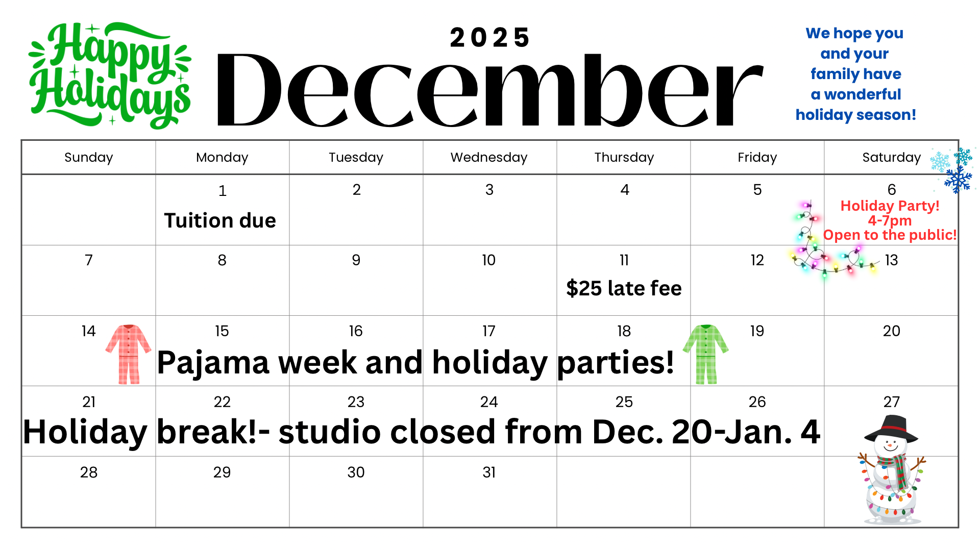 Studio Monthly Calendars Please note that events may be added to calendar once the school year begins :) Stay tuned for our second semester calendars to be released!